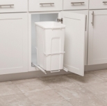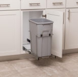 Tuck your trash away with our single 35 qt Waste Bin, and keep the kitchen neat and clean. The bottom mount trash can cabinet organizer pulls out completely for full access; two installation options to fit a narrow or a wide cabinet. Quick and simple installation. Â