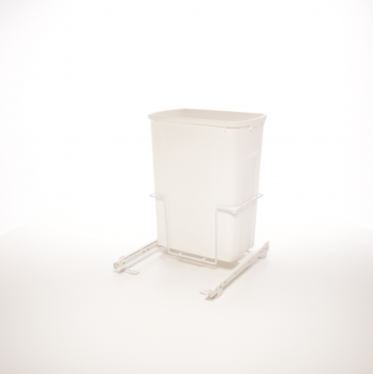 Tuck your trash away with our single 35 qt Waste Bin, and keep the kitchen neat and clean. The bottom mount trash can cabinet organizer pulls out completely for full access; two installation options to fit a narrow or a wide cabinet. Quick and simple installation.
